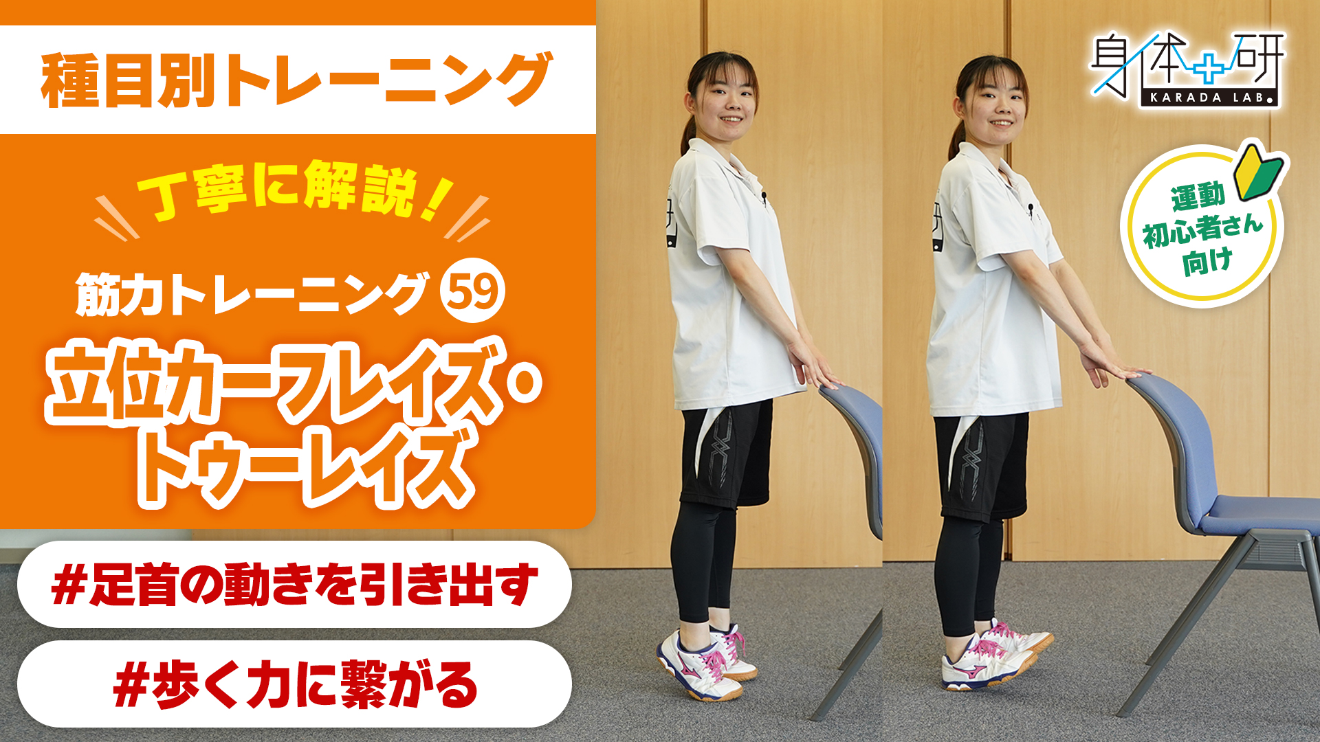 今回ご紹介したトレーニングでは、立ち上がった状態で行う、かかとの上げ下げの運動と、つま先の上げ下げの運動をご紹介しました。